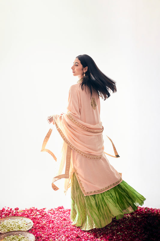 Mint Green Pure Silk Suit Set, Gold Tilla