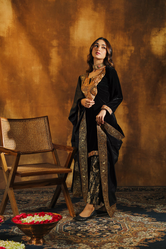 Black Silk Velvet Pheran Suit Set